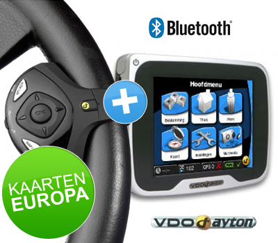 Vandaag een mooie navigatie aanbieding op Koopjessite: VDO Dayton PN2050TMC/BT Europa met Stuurwielbediening
